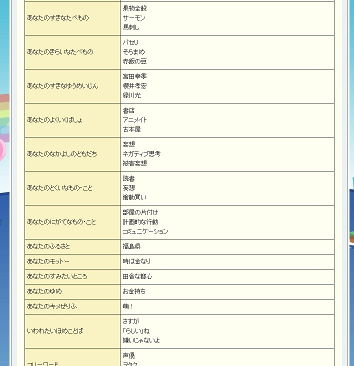 登録の際にプロフィール(好きなモノなど)を書くのが必要でして・・・・orz
